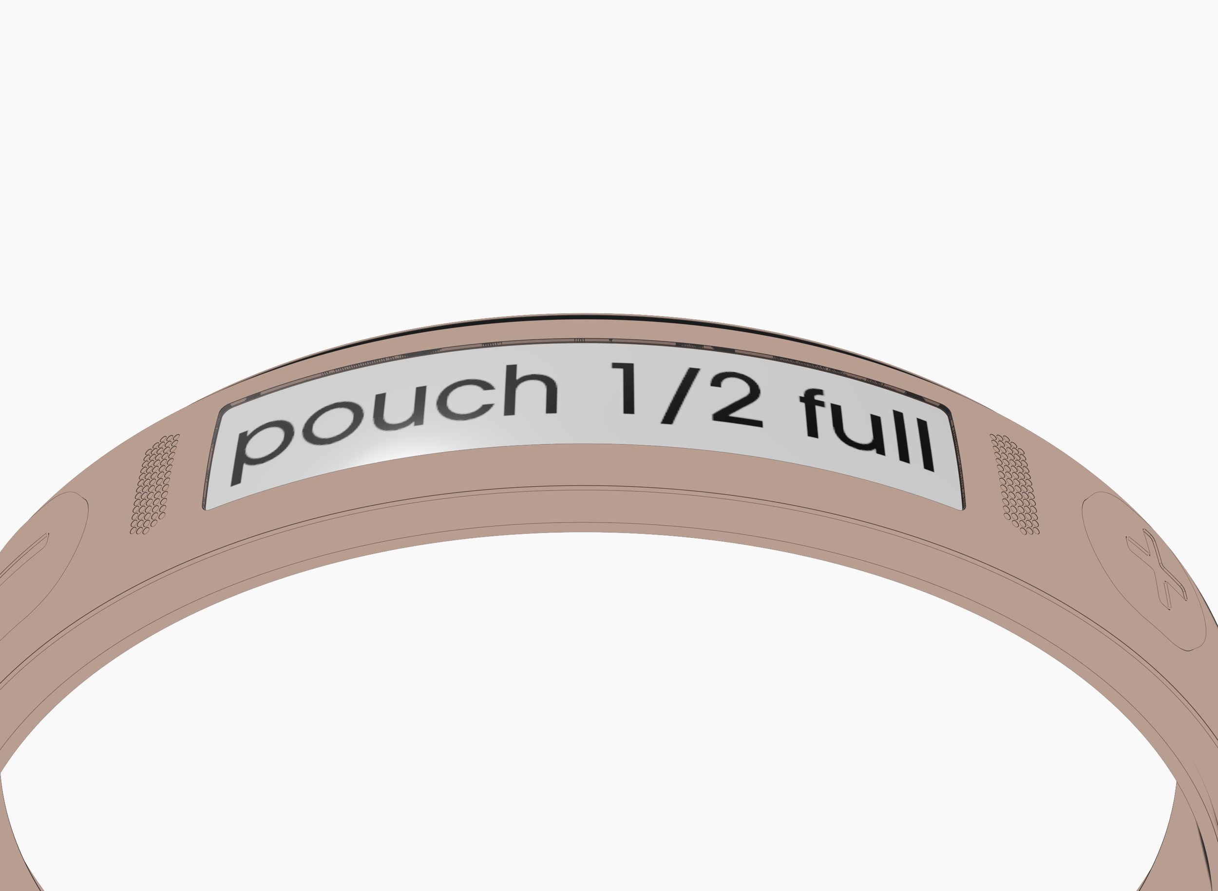 5| As the pouch reaches 1/3 full, the device detects the weight and alerts the user with discreet vibrations.